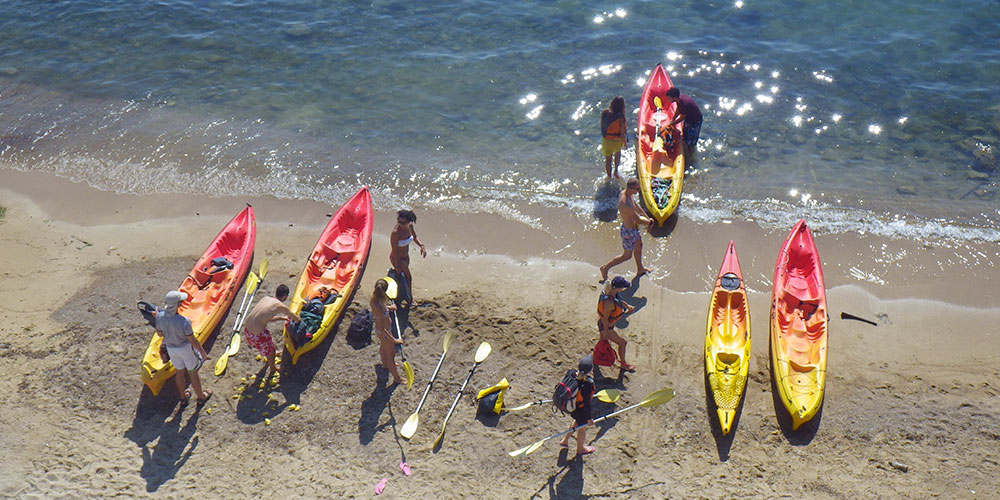 For your safety, sea kayaks are certified and European standards, a patented state guide accompanies you, he is equipped with all safety equipment (VHF, Pharma, …) if you opt for an unaccompanied tour, it ‘is also a qualified instructor that welcomes and will brief you the course to do around the Lérins Islands, and security, you will be required to have two mobile phones in your group to give your position at the lunch break, and also when you go back.